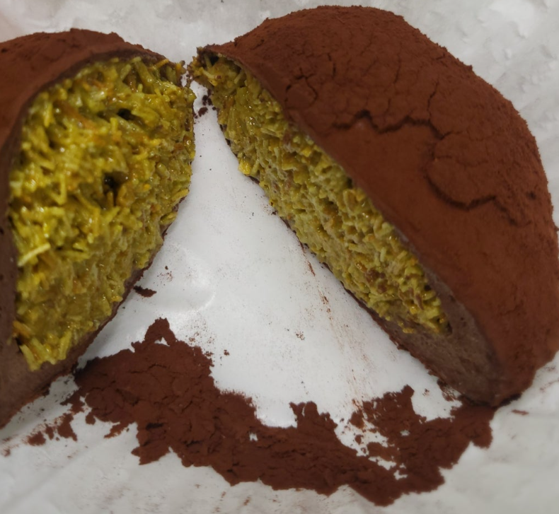 - 식은 카다이프에 피스타치오 스프레드 100g을 넣고 고르게 버무립니다.